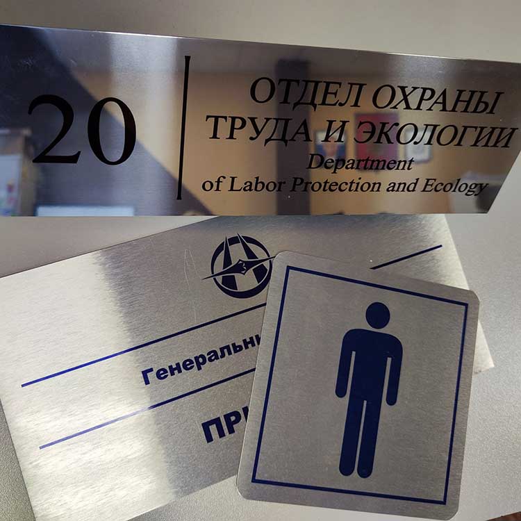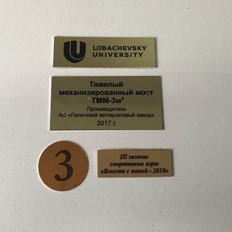 Наша компания занимается изготовлением табличек из металла с гравировкой и полноцветной печатью. Подходим индивидуально к каждому заказу, подбираем оптимальные решения по дизайну, креплению и срокам. Производство металлических табличек организовано в Нижнем Новгороде с доставкой по всей России.